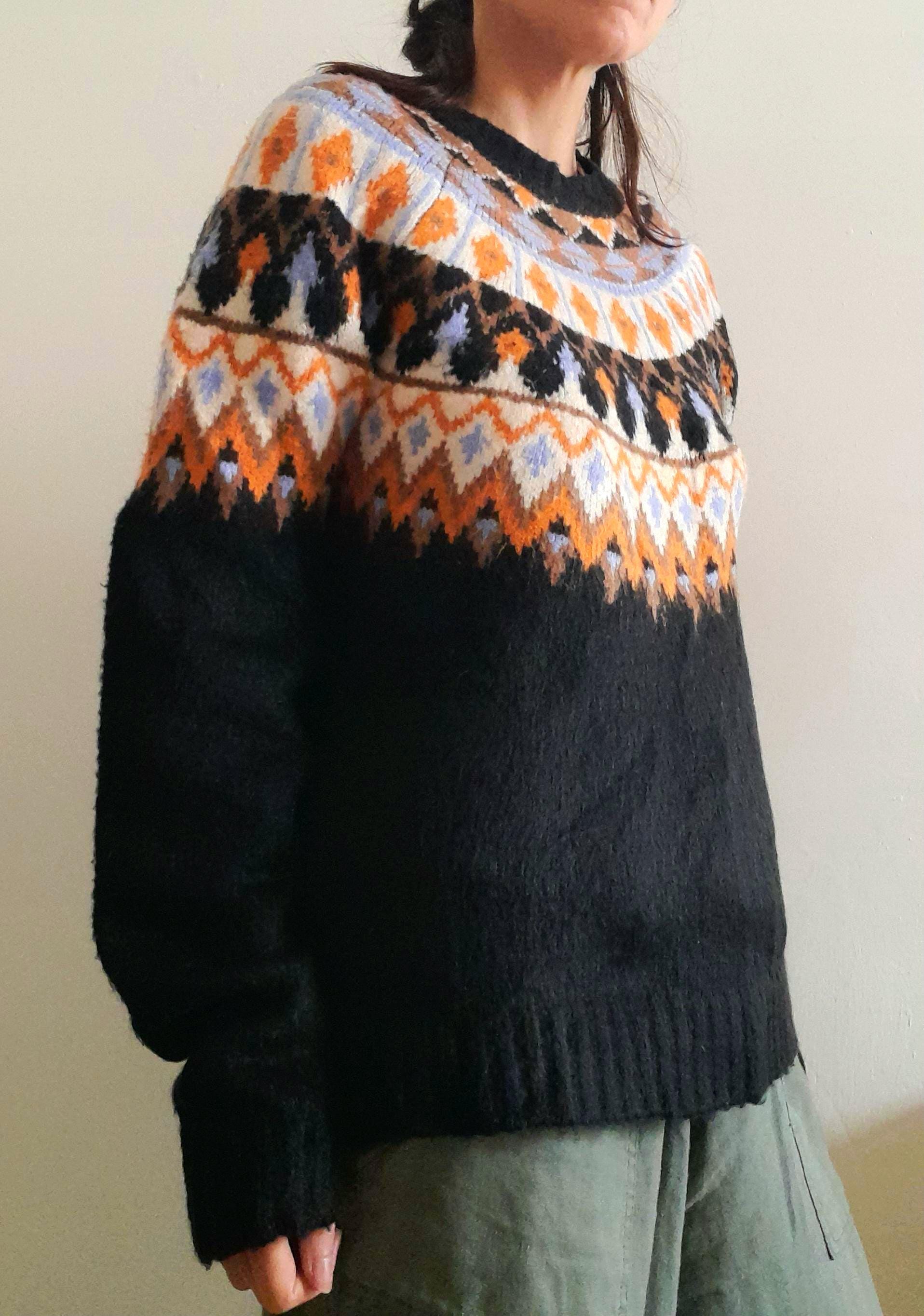 Black Orange Blue Vintage Fairisle Chunky Knitted Sweater