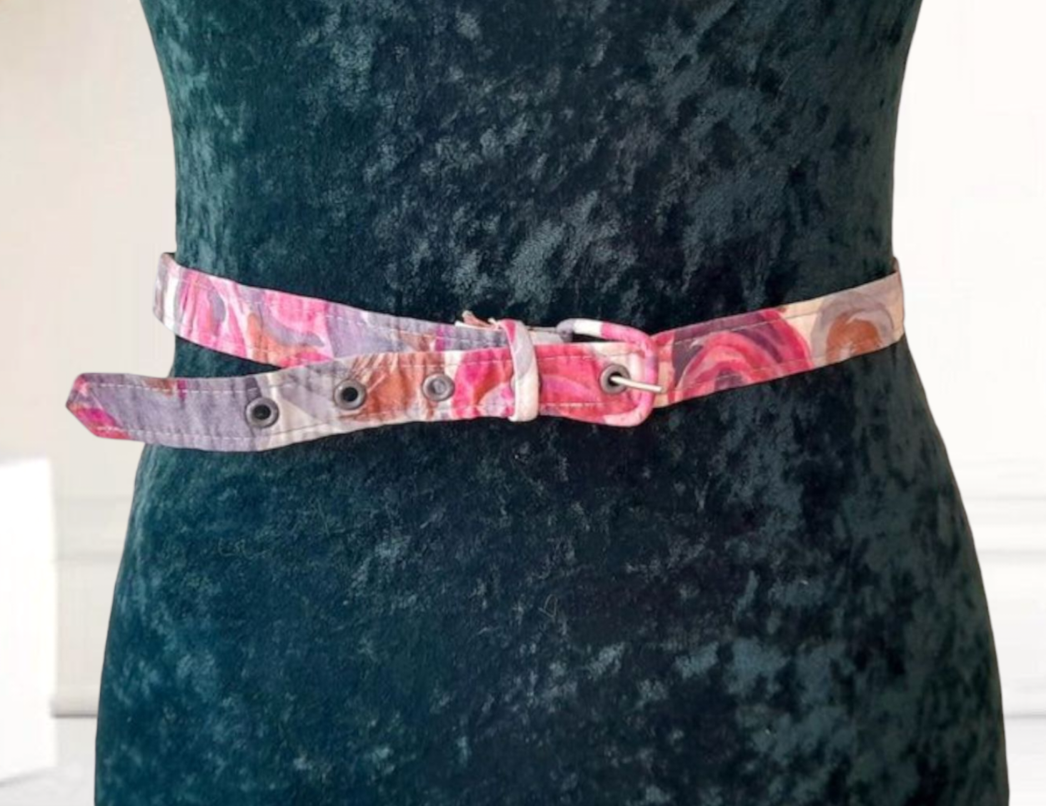 Vintage 1950s Vibrant Pink Purple Floral Fabric Belt