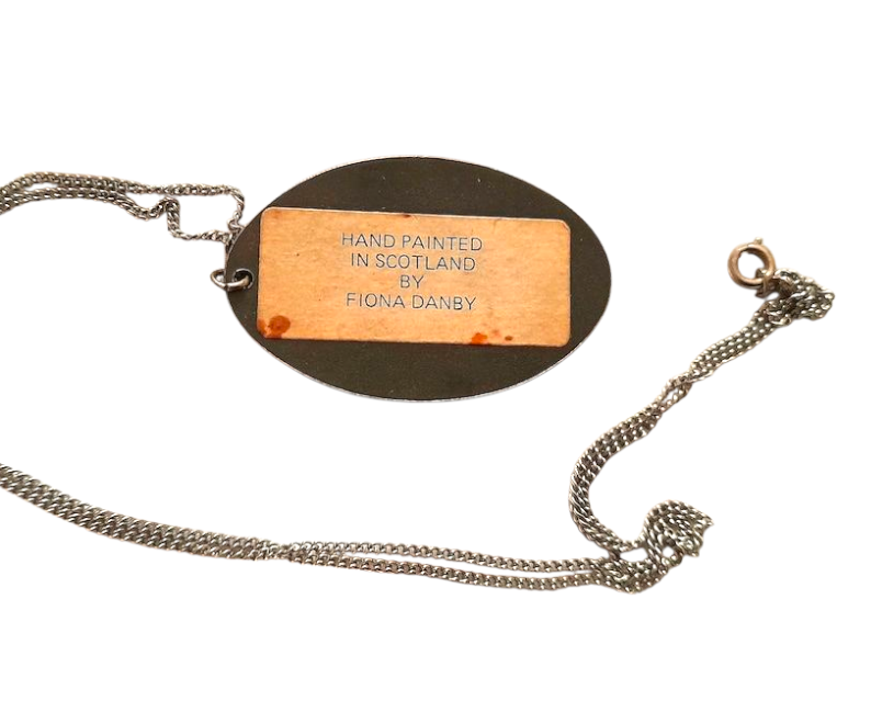 Vintage 1960s glazed flower pendant necklace. Handpainted by Fiona Danby in Scotland.
