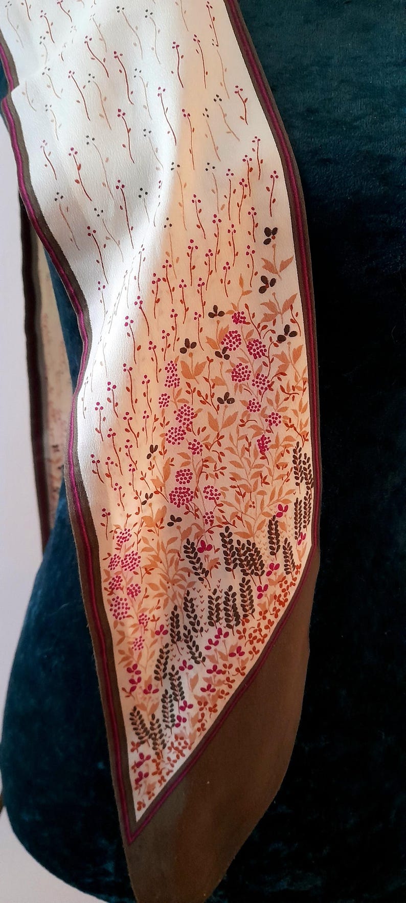Vintage 1970s Cream Brown Pink Wildflower Print Chiffon Scarf