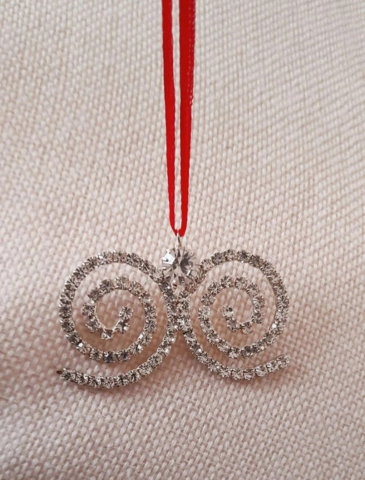 Vintage 70s Sparkling Rhinestone Swirly Ribbon Retro Festive Hanging Ornament