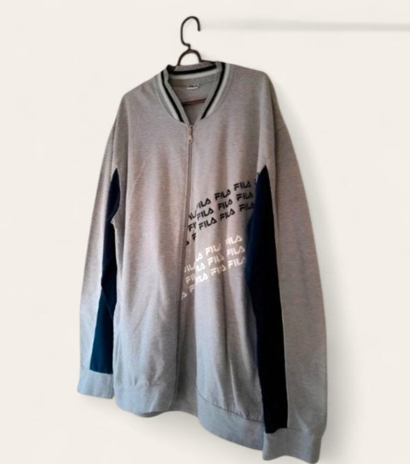 Vintage 90s FILA Grey Navy Cotton Fleece Zip Jacket