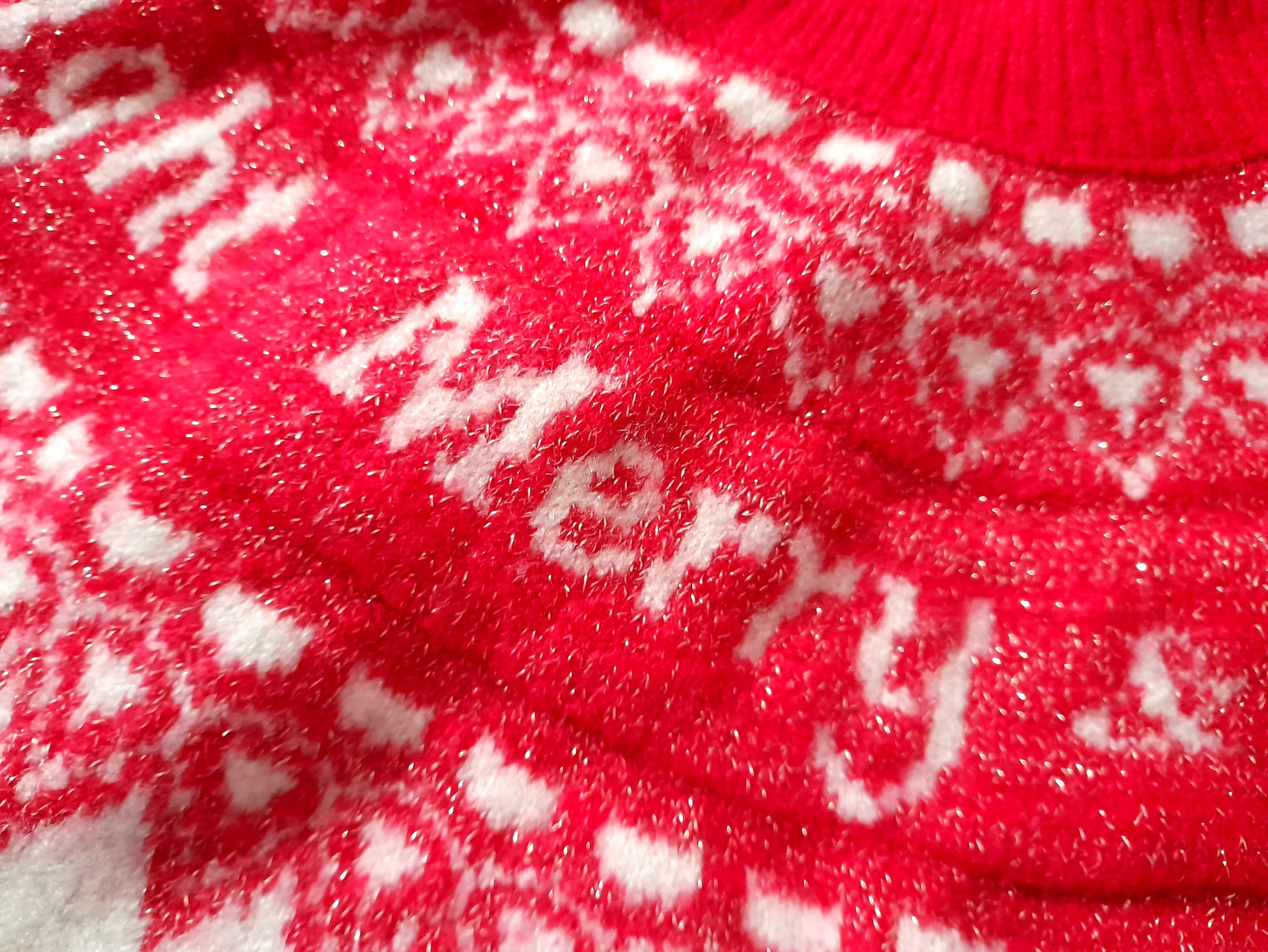 Vintage 90s HOLIDAY TIME Cream Red Gold Sparkly Festive Fairisle Jumper