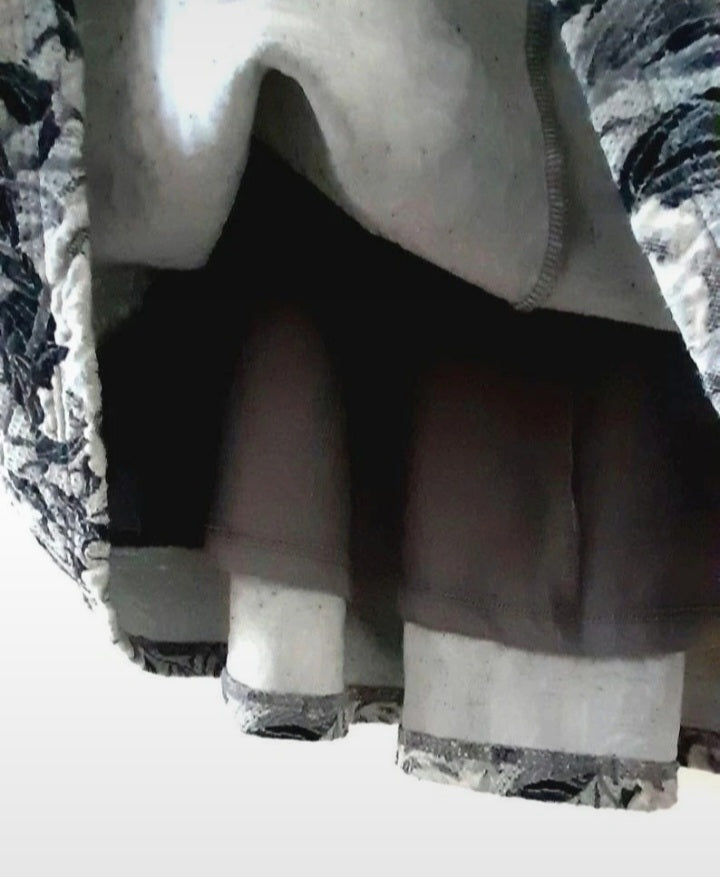 Has an elasticated waistband covered in soft grey material and an underskirt in the same fabric.