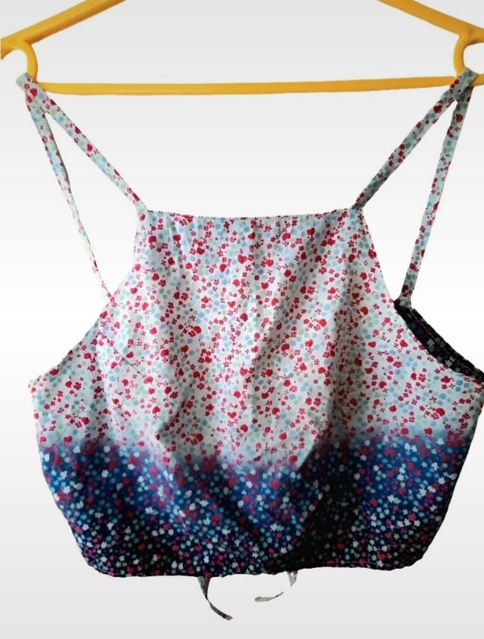 Vintage Cotton Ditsy Flower Fabric Ombre Tie Sun Top