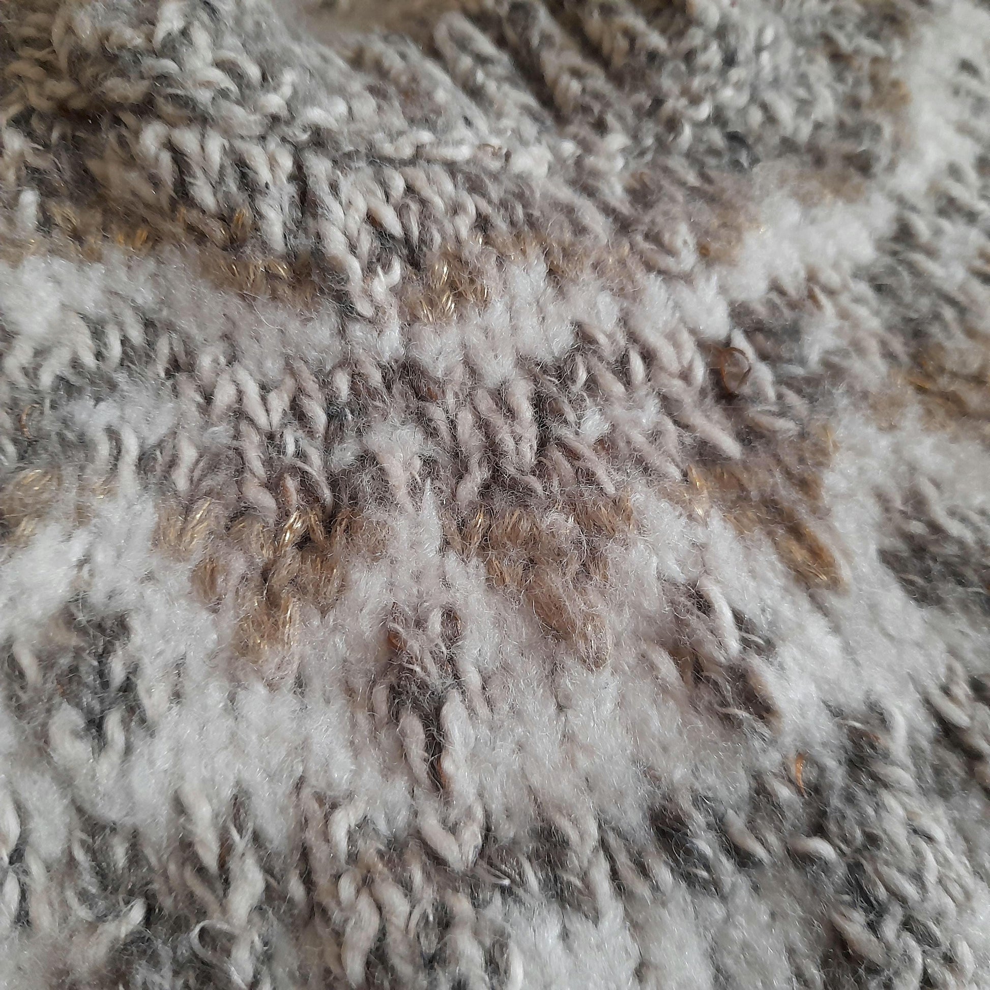 Has a white and beige Fairisle pattern design flecked with hints of pretty sparkly metallic gold threads.