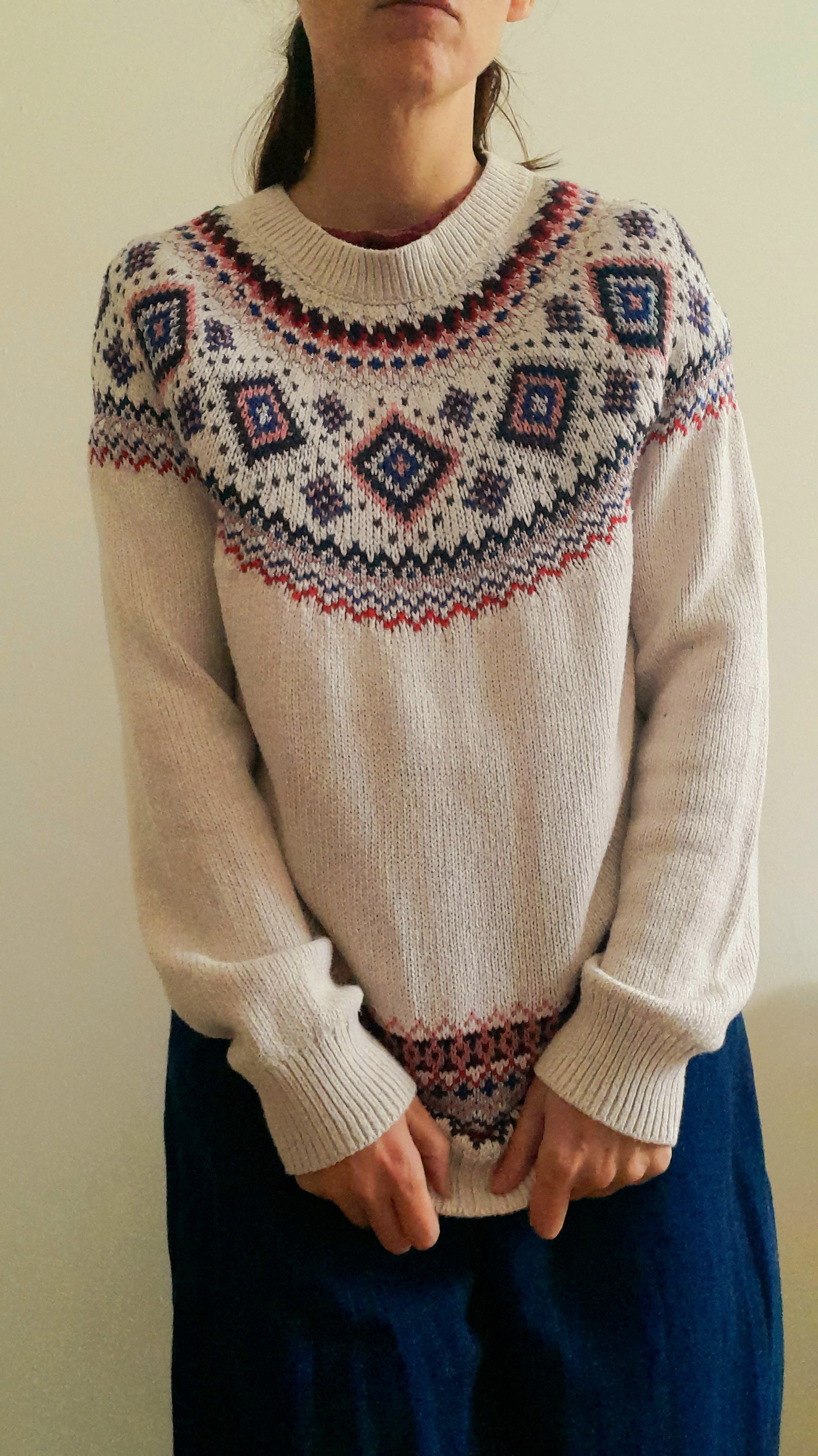 Vintage OLD NAVY Cream Pink Red Blue Silver Sparkly Fairisle Jumper