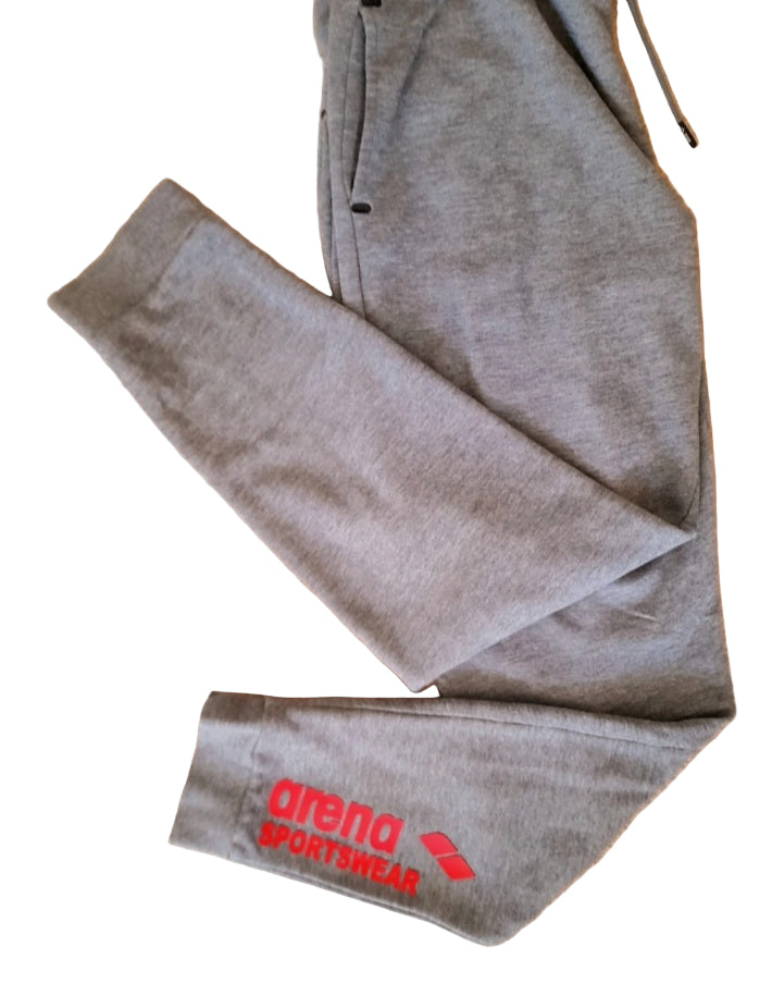 Vintage Y2K Arena Sportswear joggers. In soft stretchy cotton rich grey jersey with rubber Area Sportswear logo motif on the side of one leg.